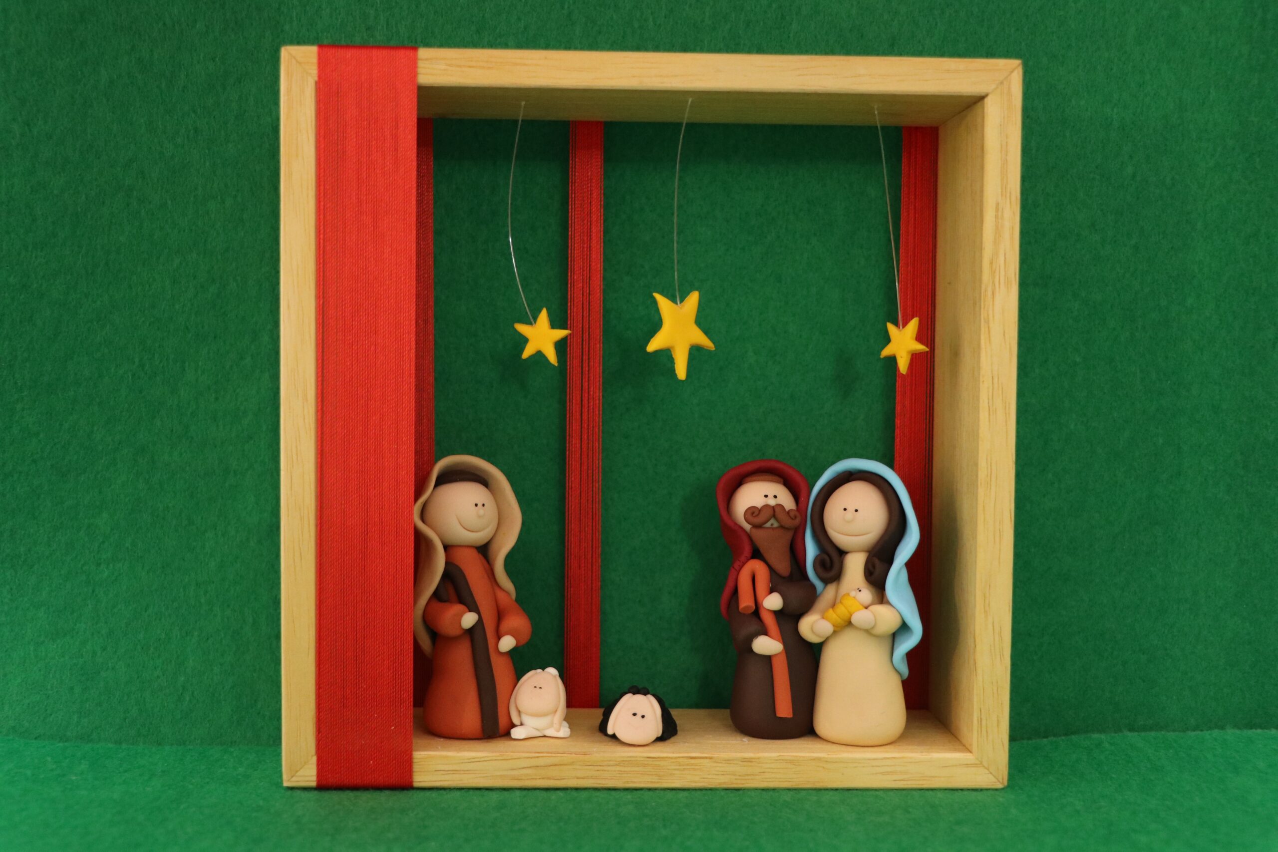 Dimensione 20×20 con con natività, personaggio, due pecorelle e stelle in resina